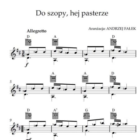 Do Szopy, Hej Pasterze (D-dur) – Gitara
