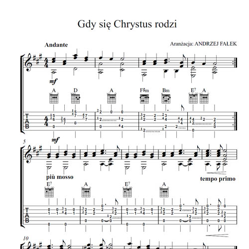 Tradycyjna polska kolęda „Gdy Się Chrystus Rodzi”, w tonacji A-dur opracowana w technice fingerstyle na gitarę.