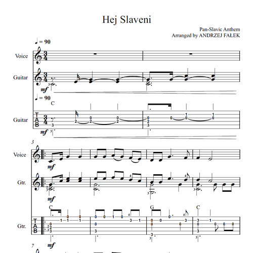 Tradycyjny hymn wszechsłowiański „Hej Slaveni / Hey Slavs” (Hej, Słowianie) w tonacji C-dur opracowany w stylu fingerstyle na gitarę.