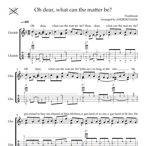 Tradycyjna angielska rymowanka i piosenka dla dzieci „Oh Dear! What Can the Matter Be” opracowana w stylu fingerstyle na ukulele.