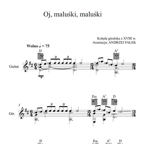 Tradycyjna polska kolęda góralska “Oj Maluśki, Maluśki”, w tonacji D-dur opracowana w stylu fingerstyle na gitarę.