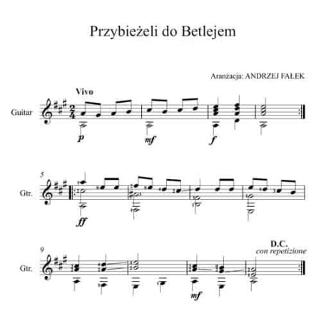 Tradycyjna polska kolęda „Przybieżeli do Betlejem”, w tonacji A-dur opracowana w technice fingerstyle na gitarę.
